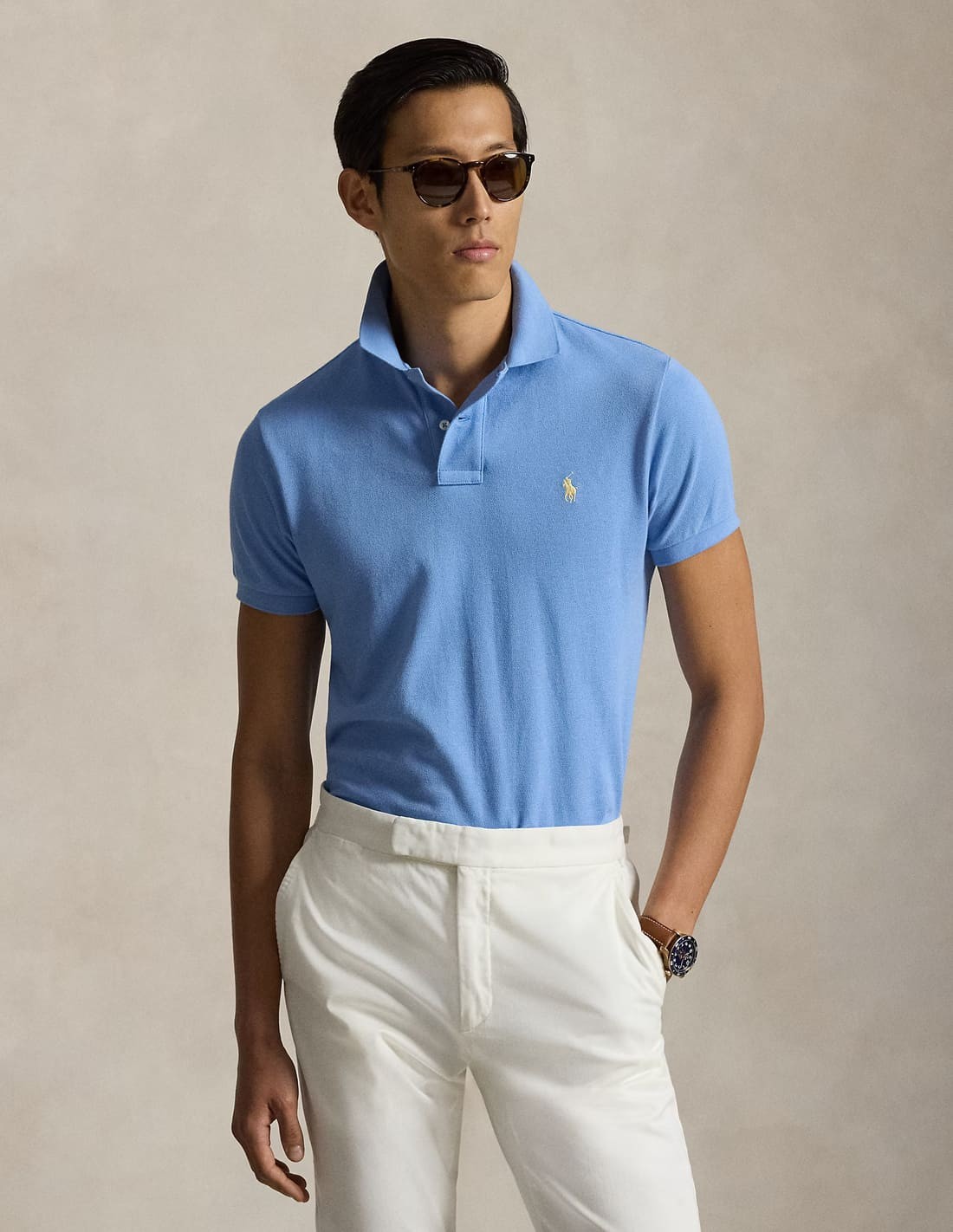 Ανακάλυψε το ανδρικό polo της Polo Ralph Lauren, ένα διαχρονικό κομμάτι που καθιέρωσε το αμερικανικό στυλ από το 1972 και συνεχίζει να ξεχωρίζει για την αυθεντικότητα και την ποιότητα του. Αυτή η εκδοχή είναι κατασκευασμένη από βαμβακερό mesh ύφασμα, προσφέροντας απαλή αίσθηση και διακριτή υφή, ενώ η προσεγμένη εφαρμογή και οι λεπτομέρειες υπογράφουν την premium αισθητική του brand. Διατίθεται σε ευρεία γκάμα χρωμάτων και γραμμών, ιδανική για casual αλλά και smart casual εμφανίσεις, η ανδρική polo μπλούζα της Ralph Lauren παραμένει το απόλυτο κομμάτι που συνδυάζει διαχρονικό design, άνεση και κομψότητα σε κάθε εμφάνιση.