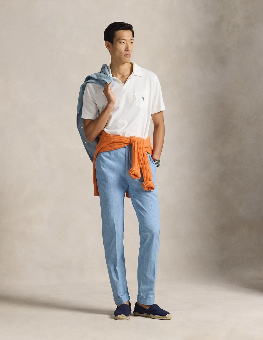Ανακάλυψε το αυθεντικό ανδρικό polo μπλουζάκι Polo Ralph Lauren, ένα διαχρονικό κομμάτι ανδρικής ένδυσης που καθιέρωσε το αμερικανικό casual στυλ από το 1972. Αυτή η εκδοχή, κατασκευασμένη από μείγμα βαμβακιού και λινού, προσφέρει εξαιρετικά ελαφριά αίσθηση και αυξημένη διαπνοή, ιδανική για τις ζεστές ημέρες της άνοιξης και του καλοκαιριού. Η προσεγμένη κατασκευή, η άψογη εφαρμογή και η διαχρονική αισθητική το καθιστούν βασικό κομμάτι για κάθε ανδρική γκαρνταρόμπα, συνδυάζοντας άνεση και κομψότητα σε κάθε περίσταση. Φόρεσέ το με jeans, chinos ή tailored βερμούδα και επένδυσε σε ένα ανδρικό polo Ralph Lauren που ξεχωρίζει για την ποιότητα, το premium ύφασμα και το αυθεντικό, iconic design του.