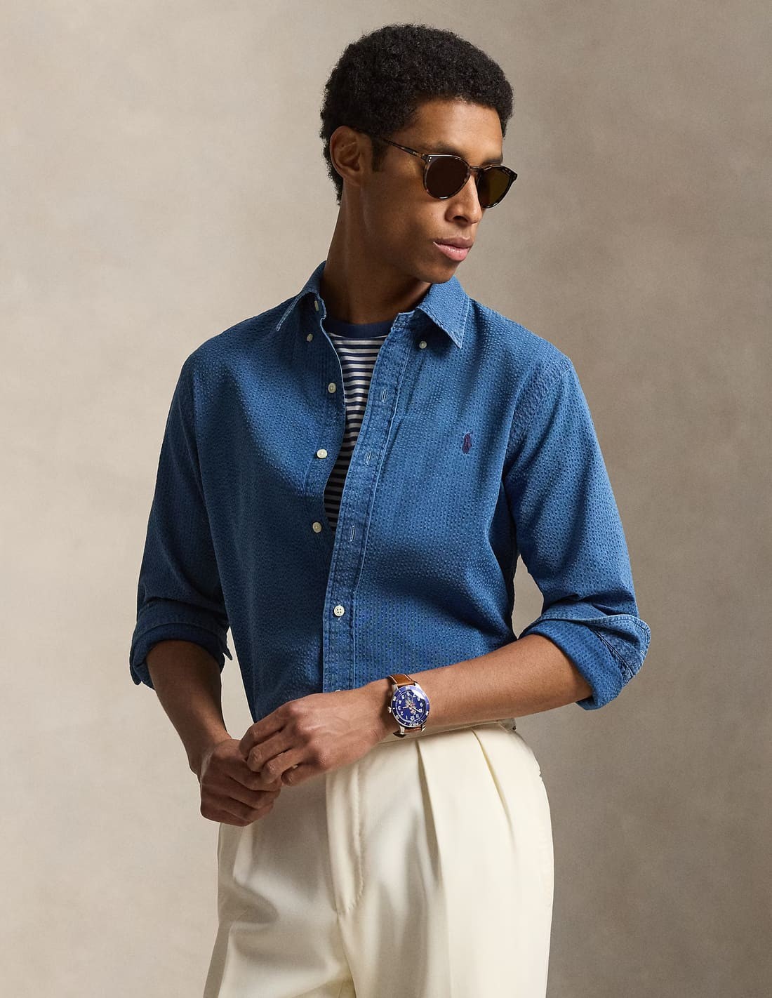 Ανακάλυψε το ανδρικό πουκάμισο Custom Fit Polo Ralph Lauren, μια διαχρονική επιλογή που συνδυάζει κομψότητα και άνεση για κάθε σύγχρονο άνδρα. Κατασκευασμένο από ελαφρύ και διαπνέον βαμβακερό seersucker, προσφέρει δροσερή αίσθηση και φυσική υφή που το καθιστά ιδανικό για τις ανοιξιάτικες και καλοκαιρινές εμφανίσεις. Η Custom Fit γραμμή χαρίζει προσεγμένη, κομψή εφαρμογή χωρίς να περιορίζει την κίνηση, ενώ το χαρακτηριστικό κεντημένο Pony στο στήθος υπογράφει την αυθεντικότητα και την premium αισθητική του brand. Φόρεσέ το με chinos ή jeans για smart casual σύνολα ή συνδύασέ το με σακάκι για πιο προσεγμένες εμφανίσεις, επενδύοντας σε ένα ανδρικό πουκάμισο Polo Ralph Lauren που ξεχωρίζει για ποιότητα, διαχρονικό design και εκλεπτυσμένο στυλ.