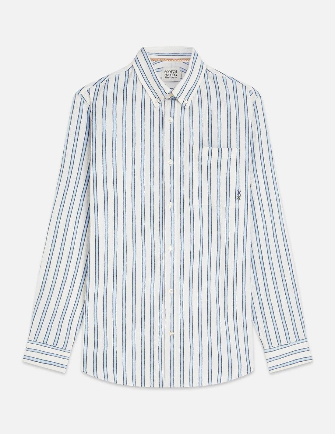 Αναβάθμισε το καθημερινό σου στυλ με αυτό το ανδρικό πουκάμισο Scotch & Soda σε ριγέ σχέδιο, που ξεχωρίζει για την ιδιαίτερη crinkle υφή του και τη σύγχρονη αισθητική του. Με κανονική γραμμή που εξασφαλίζει άνετη εφαρμογή, αποτελεί ιδανική επιλογή για casual αλλά και smart-casual εμφανίσεις, από το γραφείο μέχρι τη βόλτα. Ένα μοντέρνο ανδρικό ριγέ πουκάμισο που συνδυάζει στυλ και άνεση, προσφέροντας δροσερή αίσθηση και ευκολία στο styling, για όσους αναζητούν ποιοτικά ανδρικά ρούχα που ξεχωρίζουν σε κάθε περίσταση.