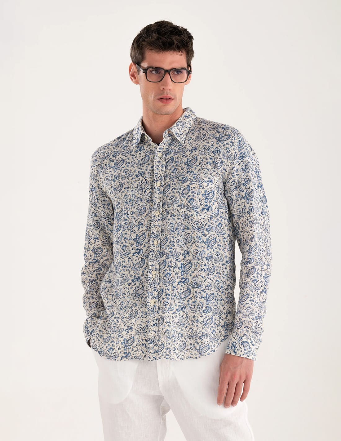 ΠΟΥΚΑΜΙΣΟ FLORAL PRINTED LINEN POCKET REGULAR FIT