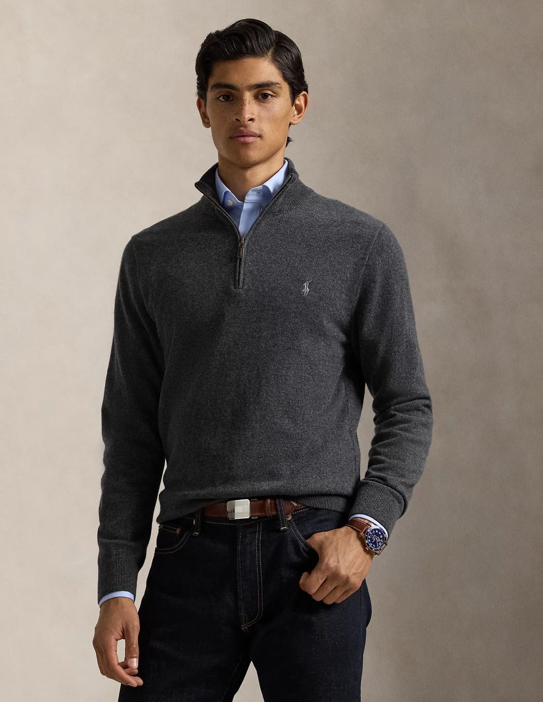 Αναβαθμίστε το ανδρικό σας ντύσιμο με το εκλεπτυσμένο quarter-zip πουλόβερ Polo Ralph Lauren, κατασκευασμένο από πολυτελές ιταλικό μαλλί για εξαιρετική απαλότητα και ζεστασιά. Το διαχρονικό του design συνδυάζεται άψογα με τη μοντέρνα γραμμή και την πρακτική λαιμόκοψη με φερμουάρ, ενώ η χαρακτηριστική κεντημένη φιγούρα Polo Pony στο στήθος προσθέτει την εμβληματική πινελιά του brand. Ιδανικό για smart casual εμφανίσεις ή layering τις πιο ψυχρές ημέρες, αυτό το κομμάτι ενσαρκώνει την κλασική φινέτσα και την υψηλή ποιότητα που χαρακτηρίζει τη Polo Ralph Lauren.