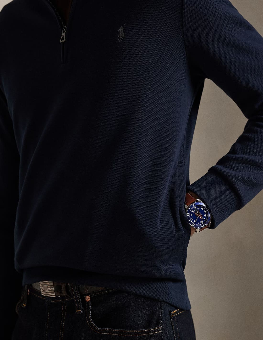 Αναβάθμισε το καθημερινό σου στιλ με αυτό το κομψό ανδρικό πουλόβερ Polo Ralph Lauren, κατασκευασμένο από απαλό cotton-blend double-knit ύφασμα με mesh εσωτερική ύφανση για άνεση και ανάσα στο δέρμα. Η καθαρή γραμμή του και η ποιοτική υφή το κάνουν ιδανικό για κάθε casual ή smart casual εμφάνιση, ενώ το περίτεχνα κεντημένο iconic Polo Pony στο στήθος υπογράφει τον αυθεντικό χαρακτήρα της Polo Ralph Lauren. Ένα διαχρονικό κομμάτι που συνδυάζει premium ποιότητα, κομψότητα και σύγχρονη άνεση—ιδανική επιλογή για τον σύγχρονο άνδρα που αναζητά στιλ και αξιοπιστία σε κάθε εμφάνιση.