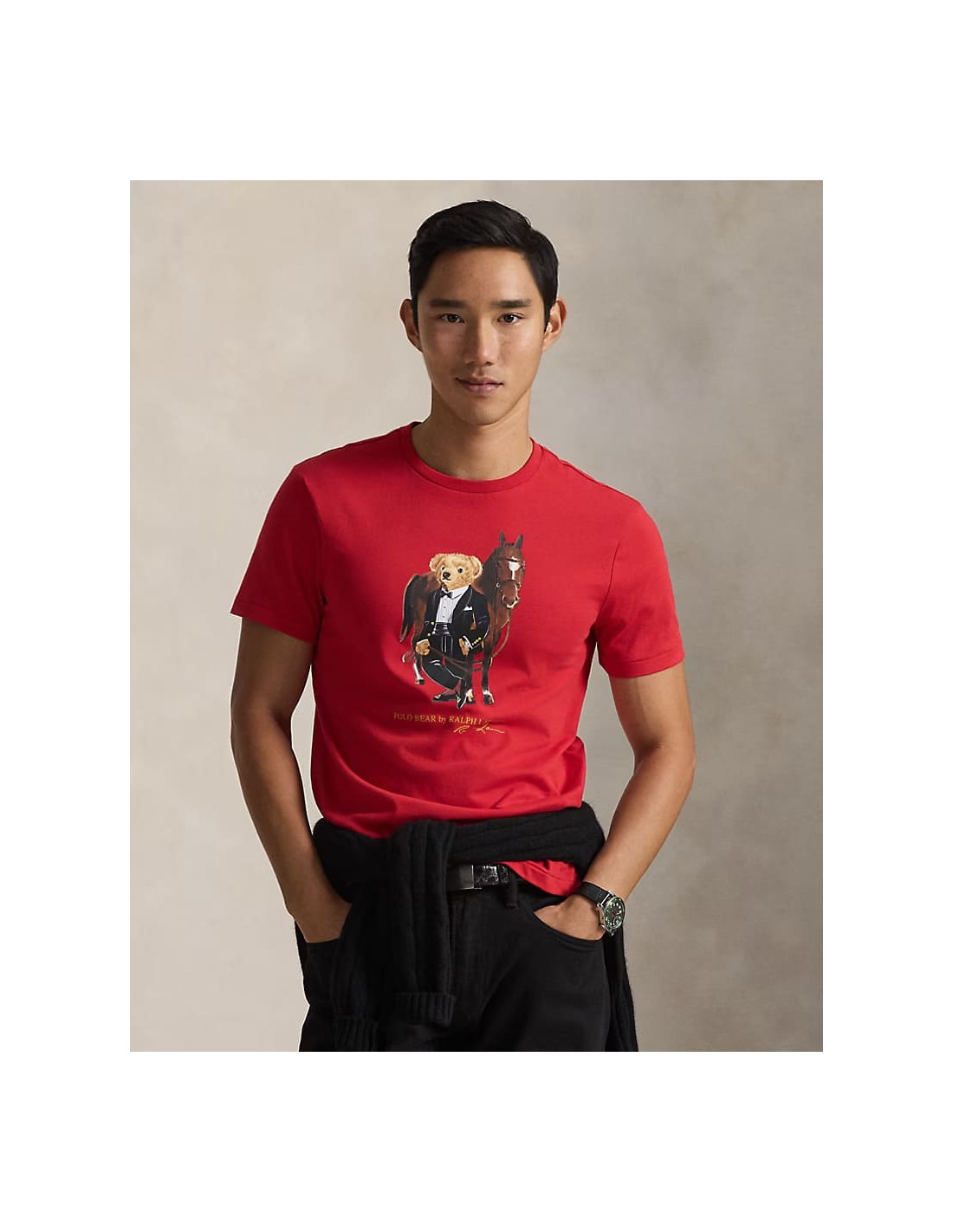 Ανακάλυψε το ανδρικό jersey T-shirt Polo Ralph Lauren με τον εμβληματικό Polo Bear, που γιορτάζει το Lunar New Year 2026 – Year of the Horse σε ένα συλλεκτικό, premium σχέδιο ιδανικό για κάθε σύγχρονο wardrobe. Με τον αγαπημένο χαρακτήρα να εμφανίζεται με κομψό σμόκιν, κόκκινες λεπτομέρειες και το άλογό του, το μπλουζάκι συνδυάζει άνεση, αυθεντικό στιλ και την ποιότητα Ralph Lauren που ξεχωρίζει στις καθημερινές αλλά και πιο ιδιαίτερες εμφανίσεις. Μια must-have επιλογή για όσους αναζητούν ανδρικά T-shirts υψηλής αισθητικής, με statement χαρακτήρα και άρτια εφαρμογή.