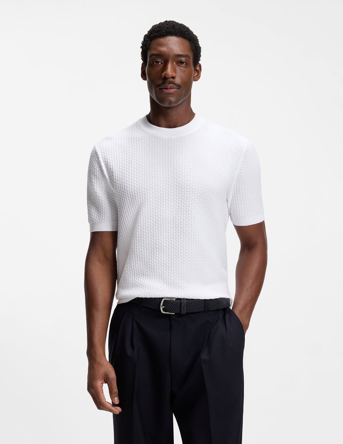 With its contrast of textures, this 3.5cm woven BOSS Menswear belt adds a distinctive touch to your look. Soft suede trims and logo-detail keeper. For the best fit, we advise ordering a belt one size larger than your waist size.