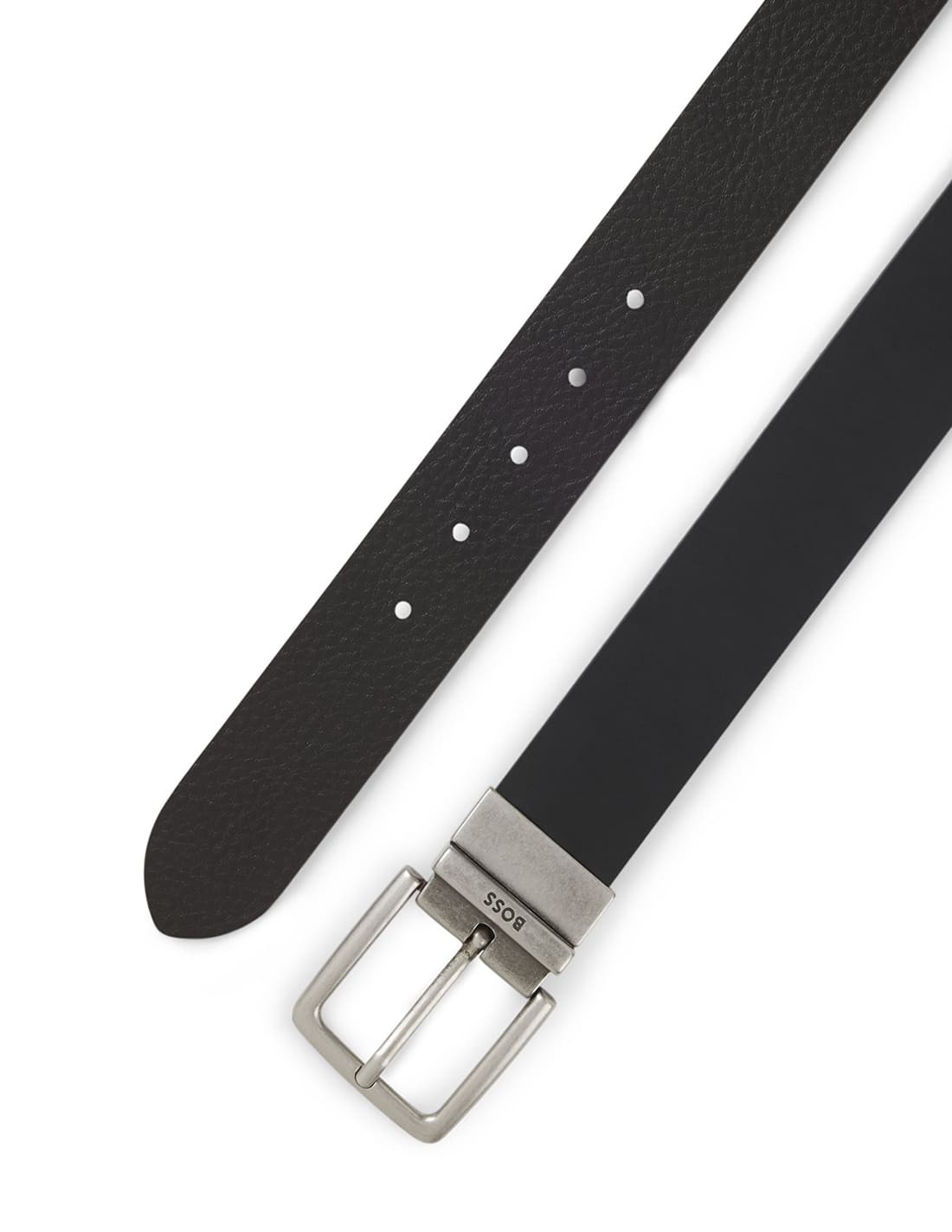 Featuring a branded keeper, this 4cm-width BOSS Menswear belt offers two looks in one. Choose between grained black and smooth brown leather.