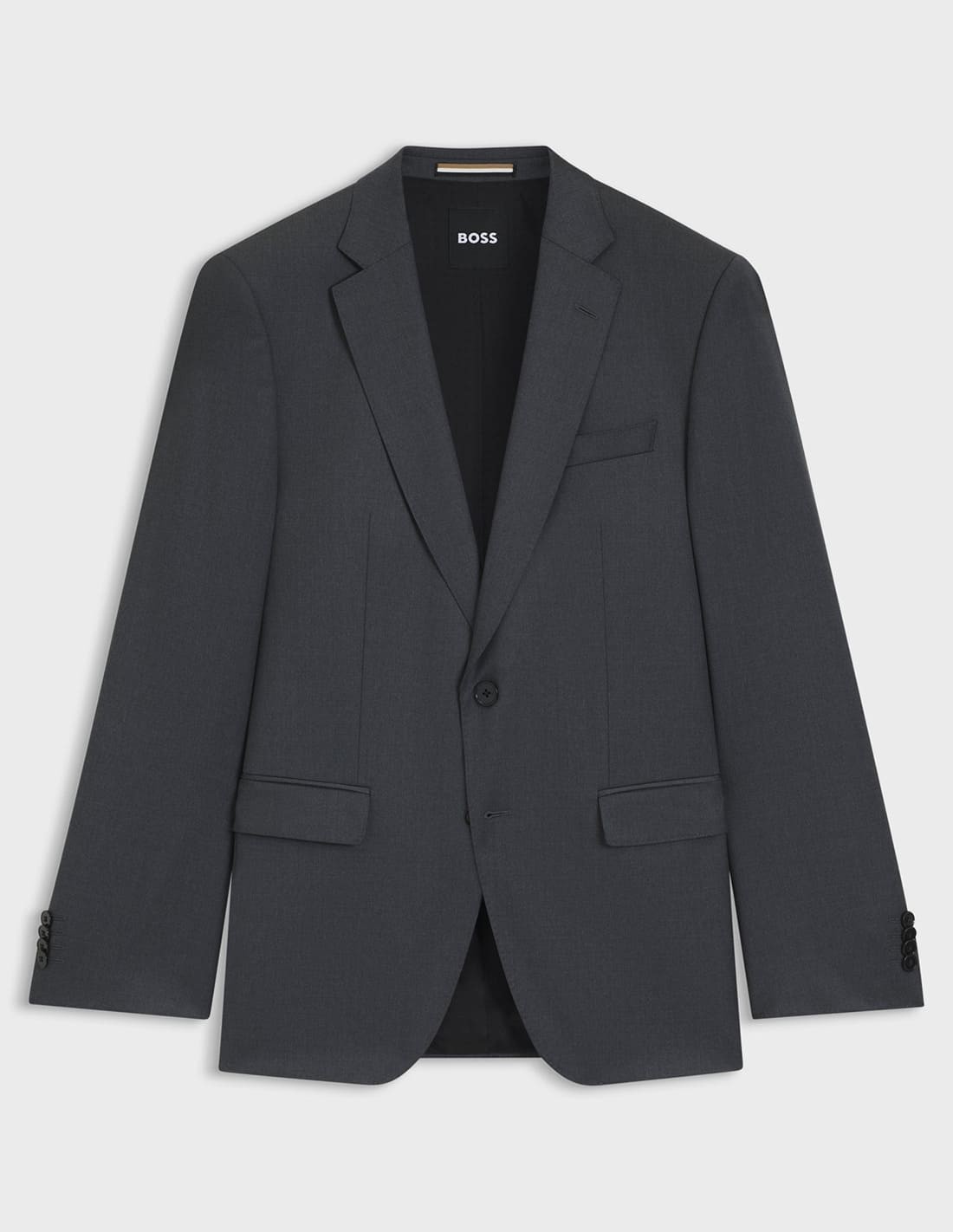 This BOSS Menswear suit jacket brings timeless elegance. Crafted in virgin wool with a serge weave. Constructed shoulders. Slim fit with natural stretch for ease.