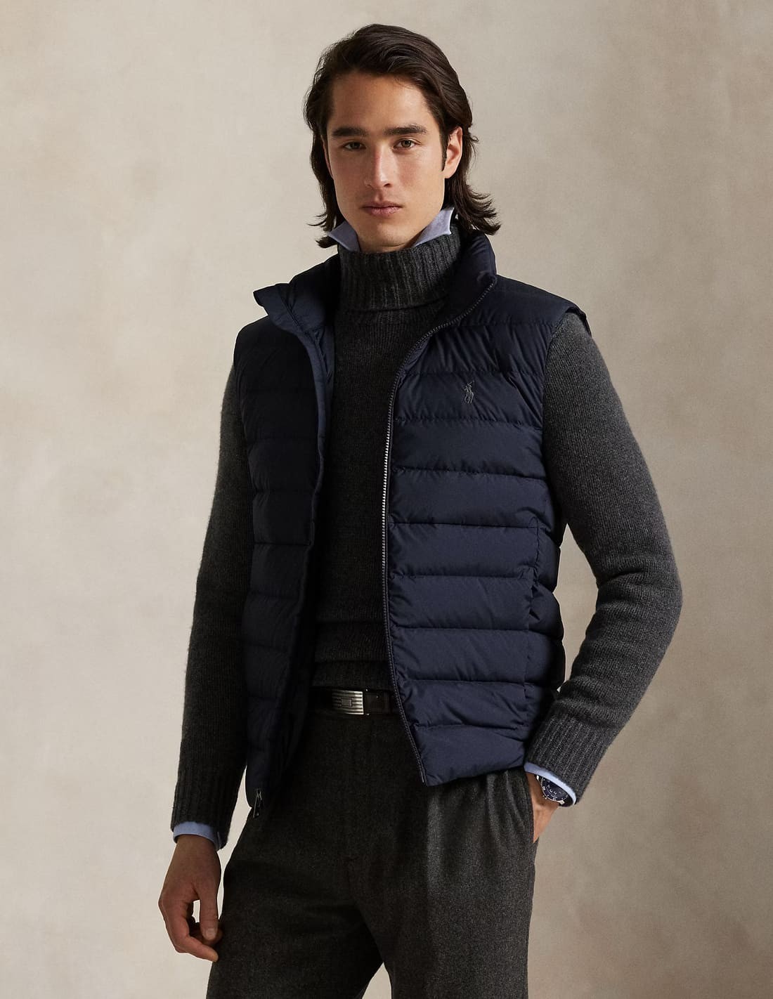 This gilet is crafted from a matte water-repellent fabric and insulated with 650-fill-power down. It also packs into its own pocket for on-the-go convenience.
