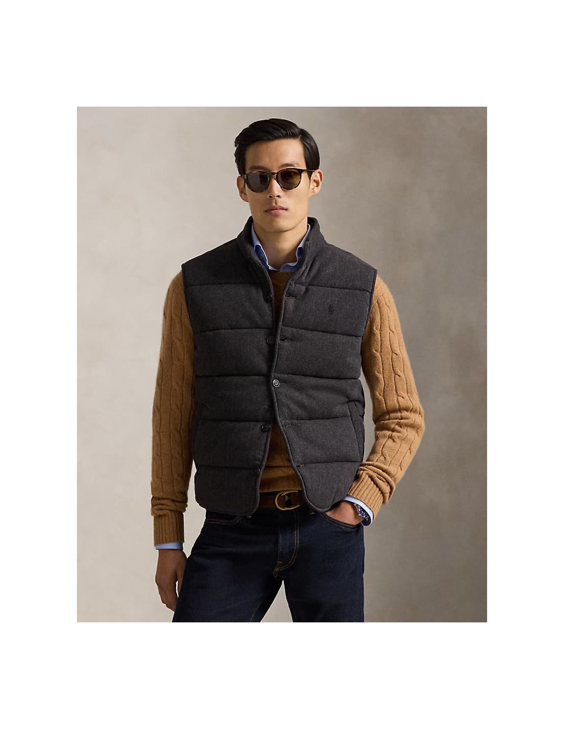 The Estate-rib fabric gives this waistcoat a supersoft texture, thanks to the lightweight cotton that’s peached. A herringbone print coupled with customised corozo buttons and the iconic Pony add a sophisticated finish.