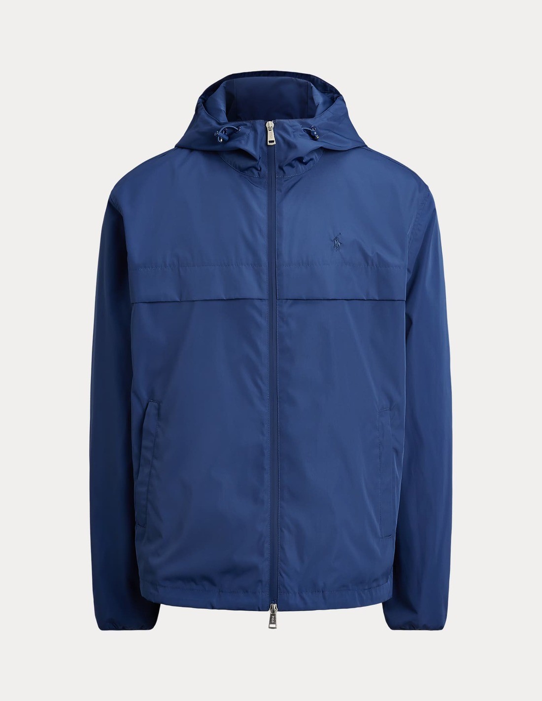 Crafted from water-repellent fabric, this jacket features functional details, such as a mesh-lined vented back and metal grommets on the underarms for breathability.