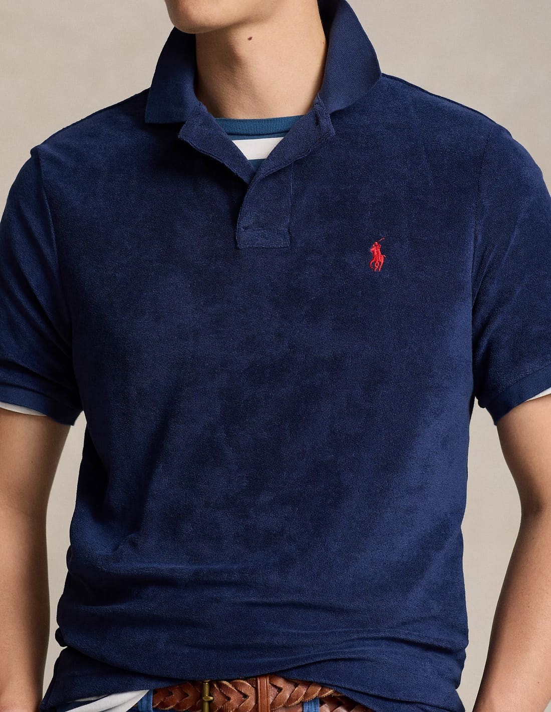 An American style standard since 1972, the Polo shirt has been imitated but never matched. Over the decades, Ralph Lauren has reimagined his signature style in a wide array of colours and fits, yet all retain the quality and attention to detail of the iconic original. This version is crafted with lightweight cotton-blend terry and features the signature embroidered Pony on the chest.