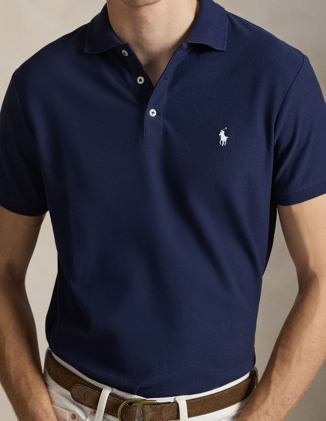 An American style standard since 1972, the Polo shirt has been imitated but never matched. Over the decades, Ralph Lauren has reimagined his signature style in a wide array of colours and fits, yet all retain the quality and attention to detail of the iconic original. This cotton version is made from a honeycomb-textured mesh fabric and finished with our signature embroidered Pony.