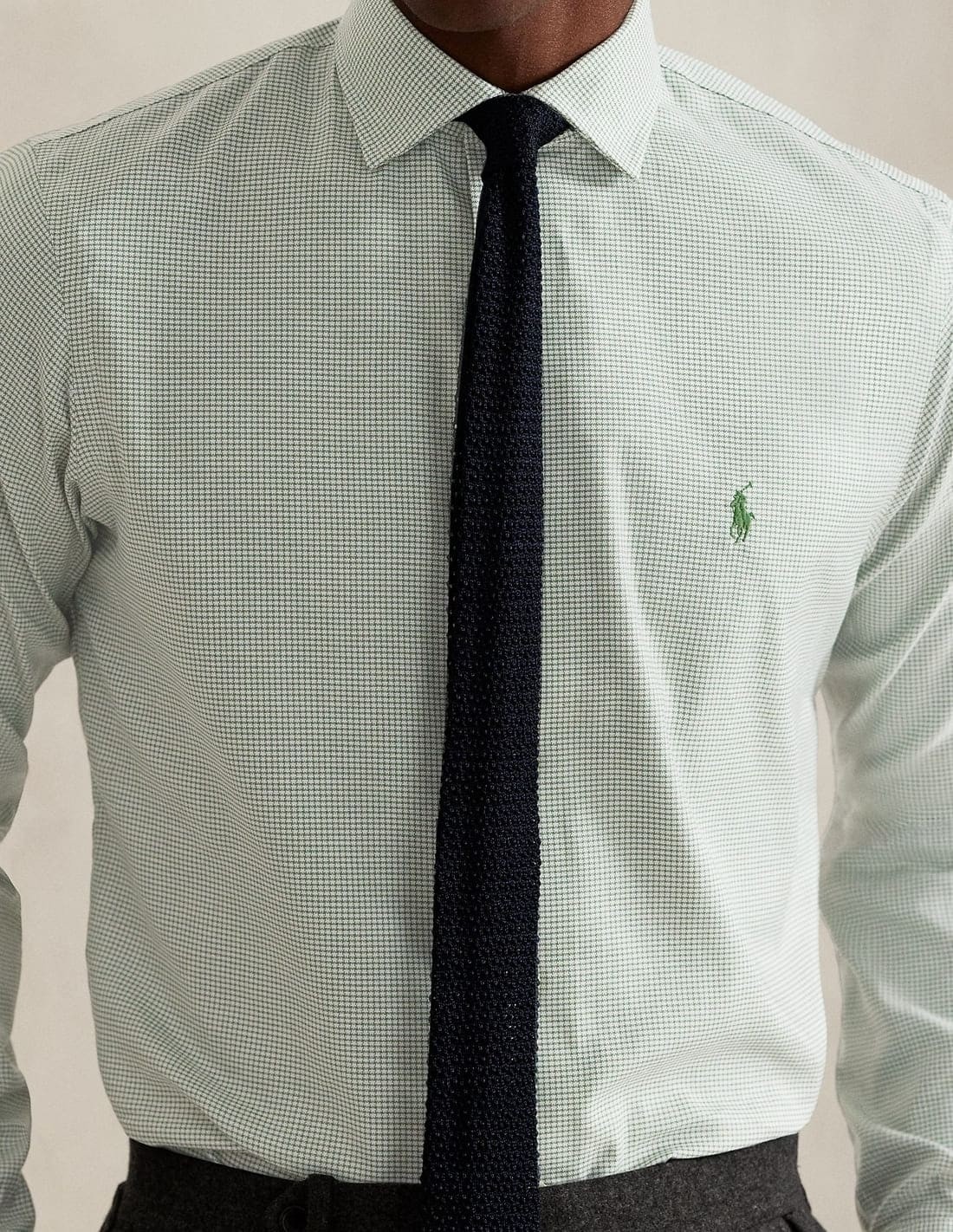 - Split pleated back yoke ensures smooth, contoured shoulders