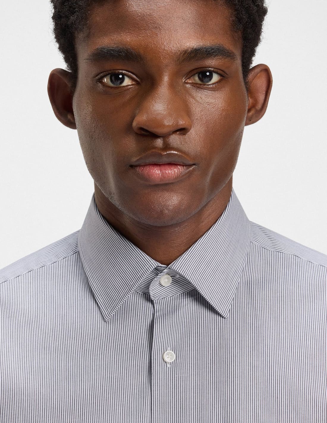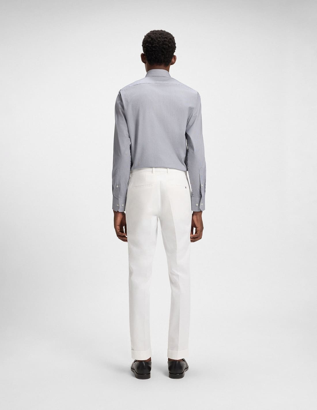 Patterned with a fine stripe, this BOSS Menswear shirt is ideal for hectic days. Crafted in stretch-cotton twill with a softening easy-iron treatment.