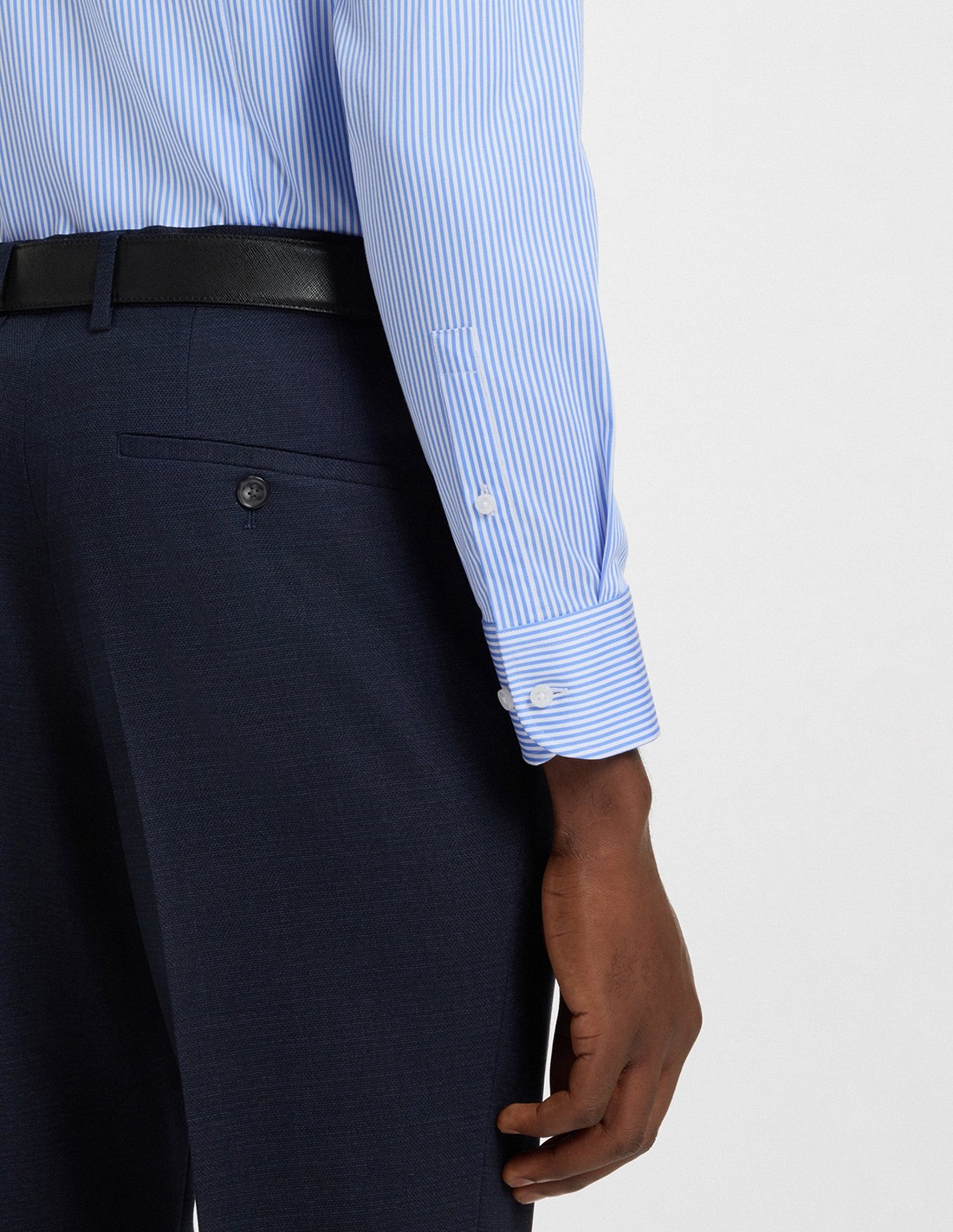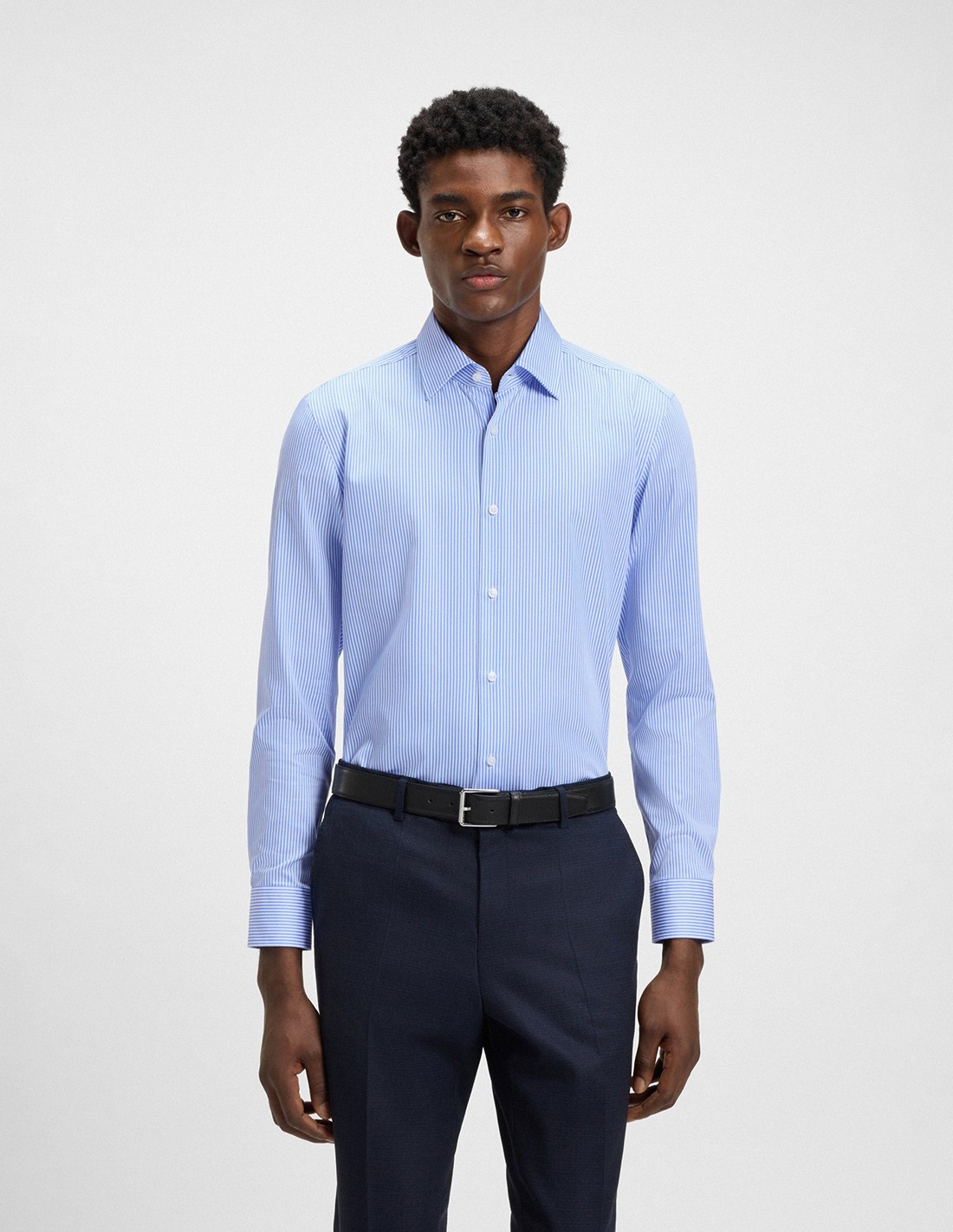 In extra-soft cotton satin that's easy to iron, this BOSS Menswear shirt is a must for busy days. Defined fit with a vertical stripe.