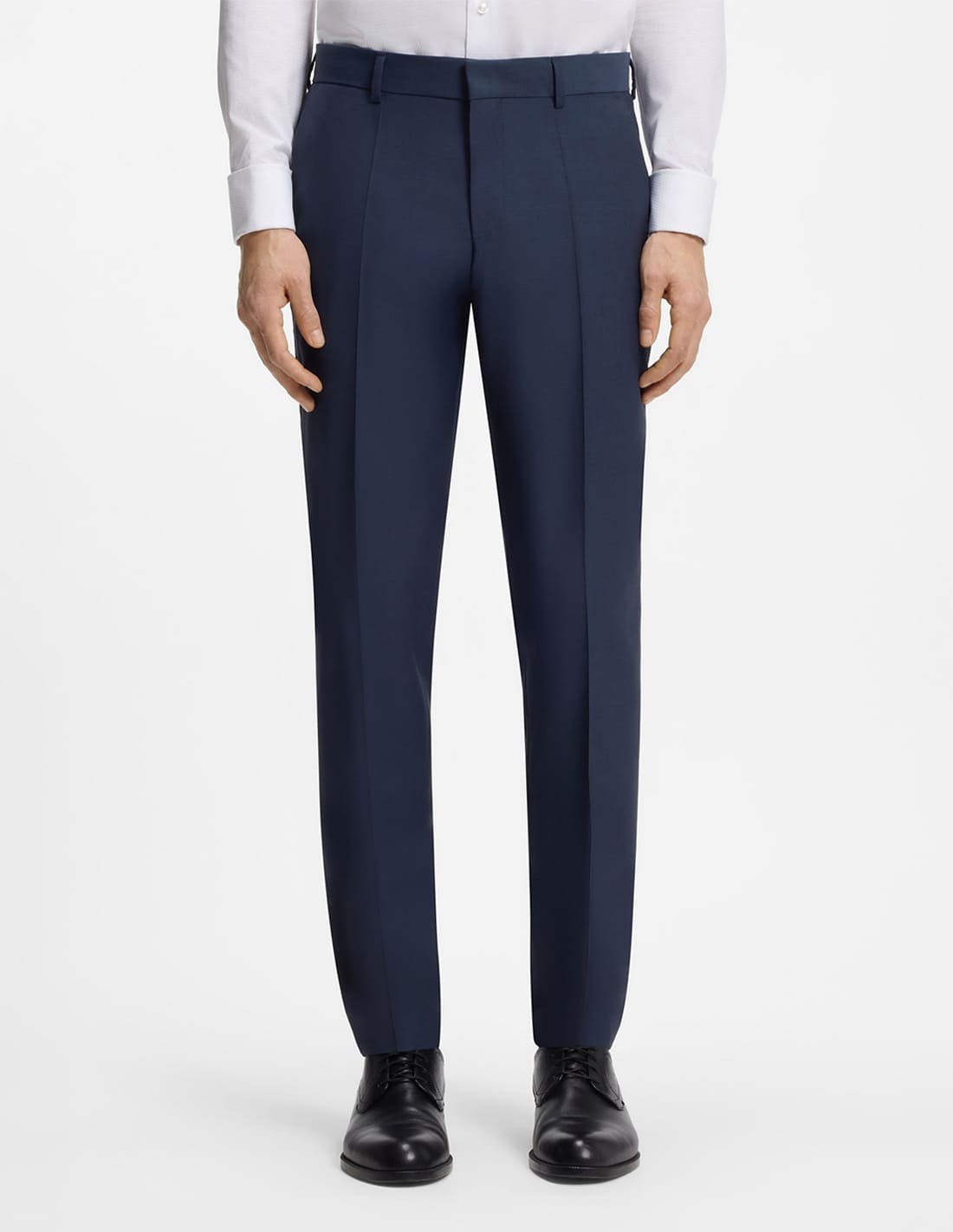 With its clean slim fit, this three-piece BOSS Menswear suit is a modern formal ensemble. Woven with a subtle pattern, this suit is crafted in virgin wool with a rich look and feel. The jacket features soft constructed shoulders and notch lapels.