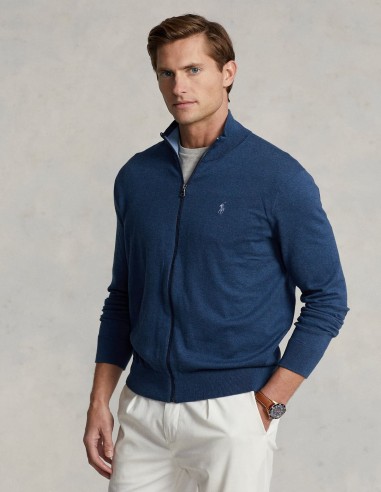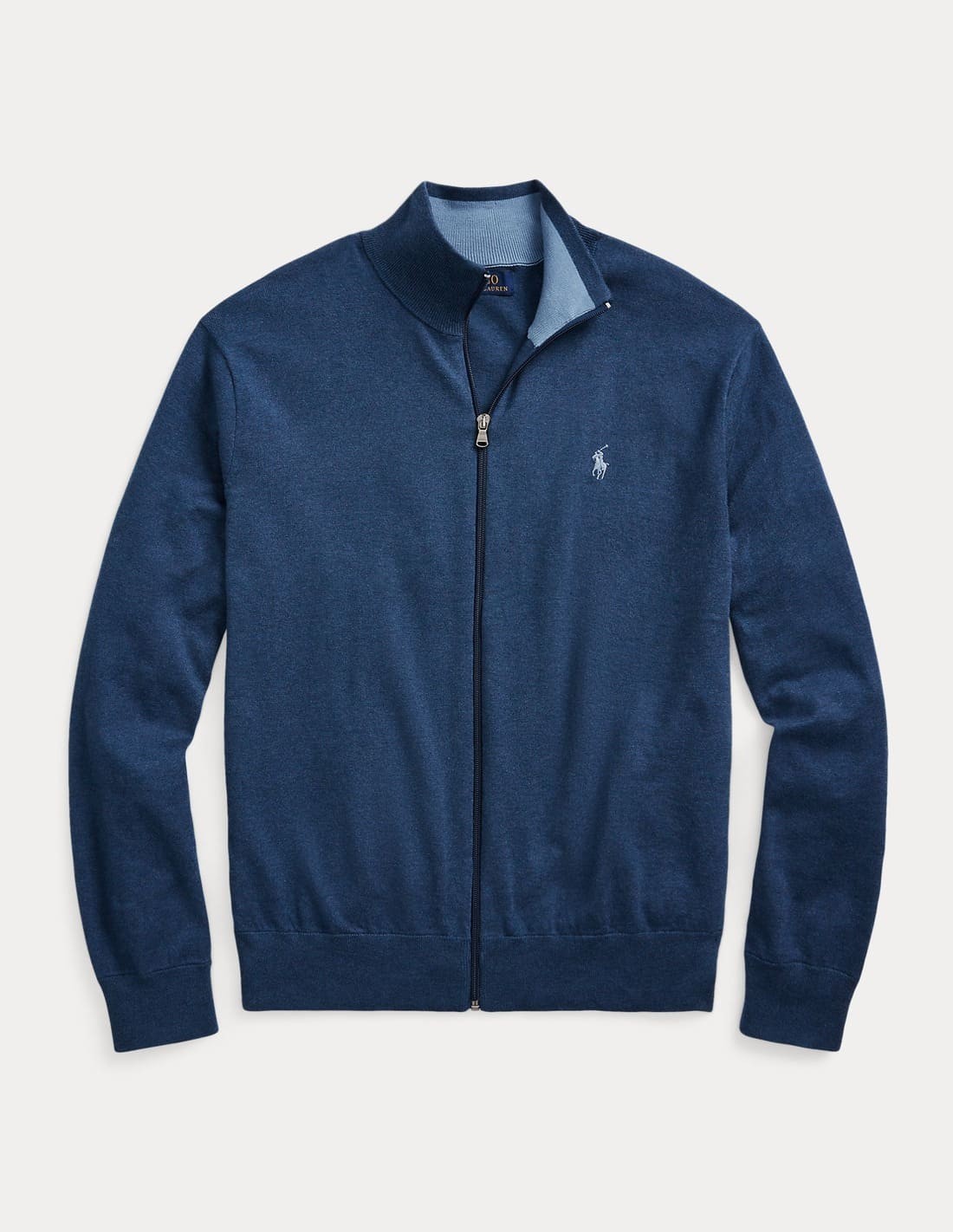 This full-zip jumper is knit with soft combed cotton and accented with a contrasting hue on the interior neck. Ralph Lauren partners with Better Cotton™ to improve cotton farming globally. Better Cotton trains farmers to use water efficiently, care for the health of soil and natural habitats, reduce use of the most harmful chemicals and implement the principles of decent work.