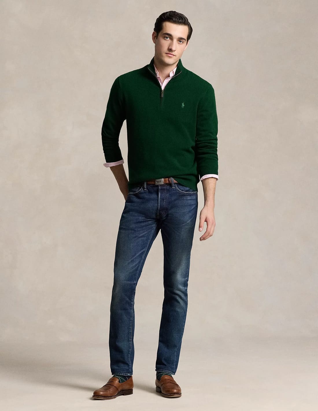 Luxurious Italian wool and the signature embroidered Pony elevate this quarter-zip sweater.