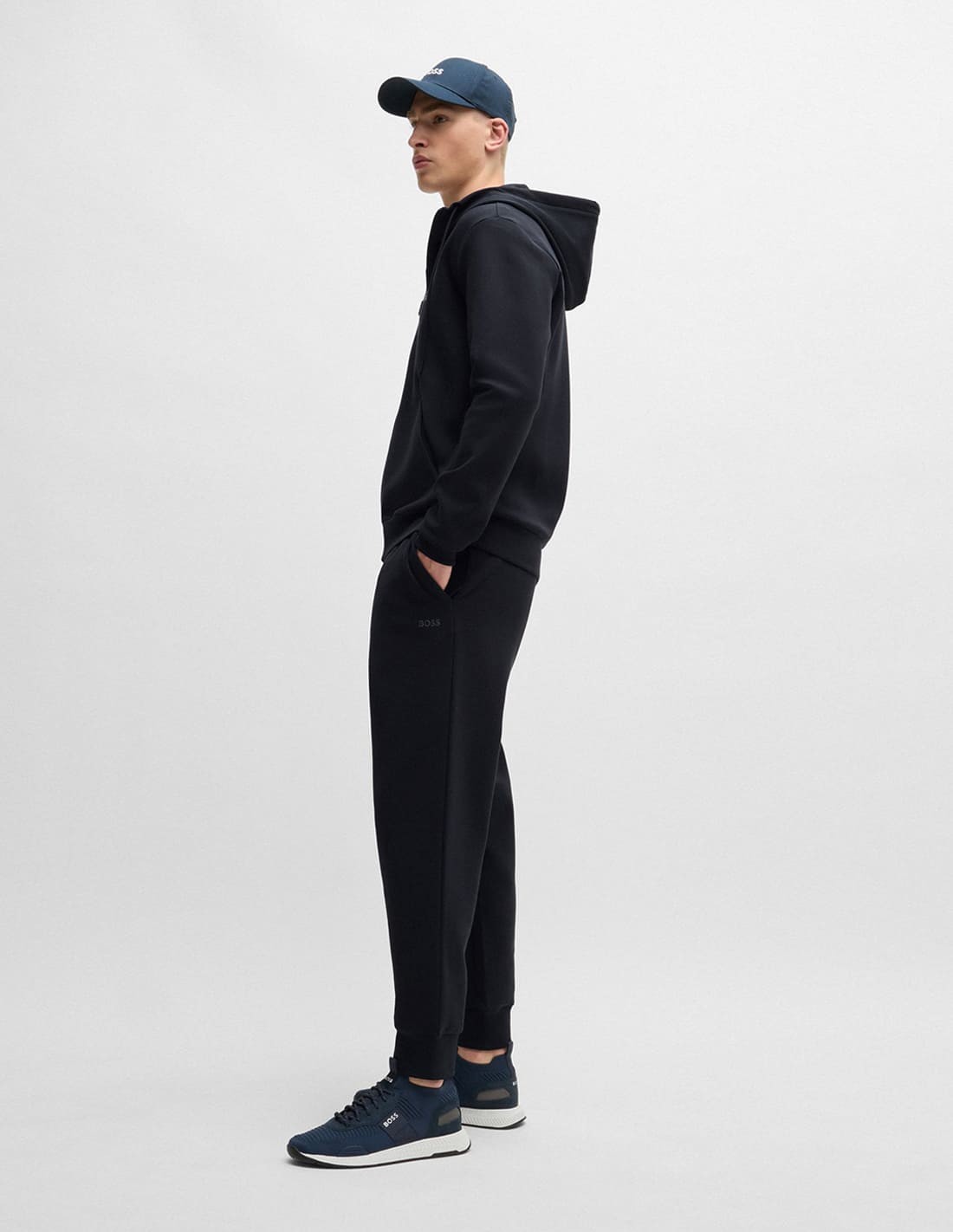 A zip hoodie in a straight fit by BOSS Menswear. Designed in stretch cotton, this piece has a logo print and hidden zip pocket.