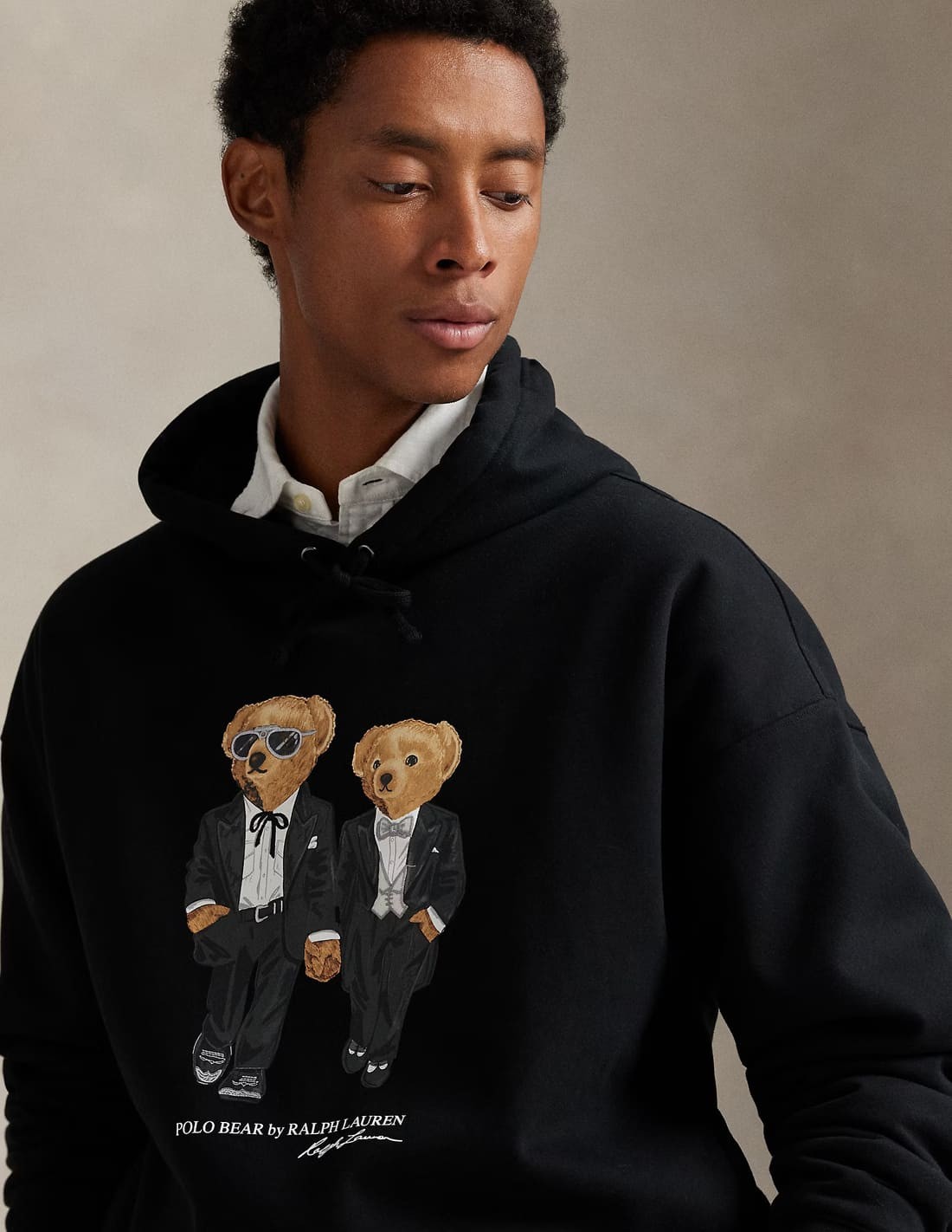 This cotton-blend hoodie, which features a high-pile fleece interior, is printed at the front with two bears in black-tie attire. Reflecting the elegance and excitement of a special occasion, the graphic is inspired by an iconic photograph of Mr and Mrs Lauren attending an awards show in the late '70s.
